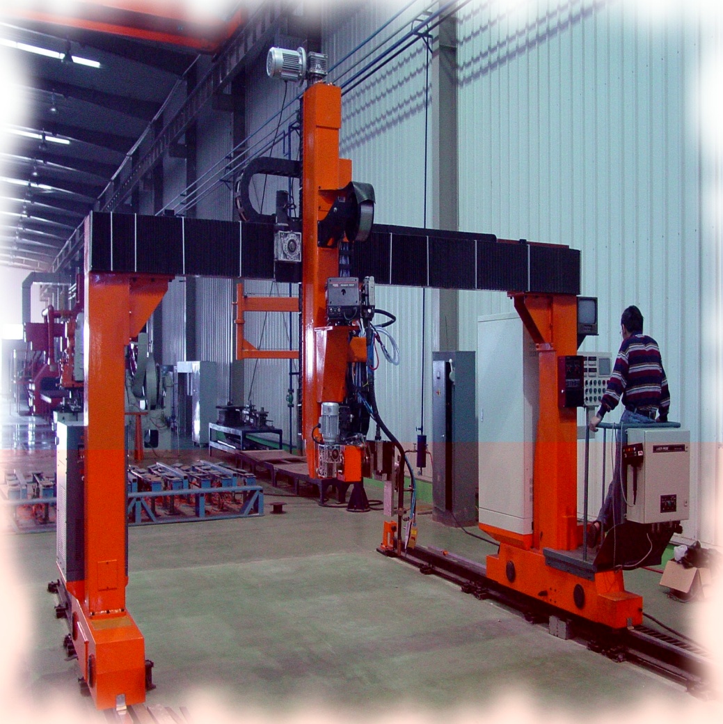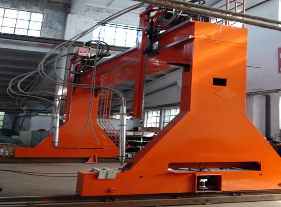 ● 龍門所配二臺焊機、保護氣氣瓶(至少2個)、控制柜等均放在龍門兩側(cè)托架上,隨龍門一起移動,進龍門的外部供電線纜采用滑線供給,使得龍門移動范圍加大。