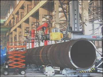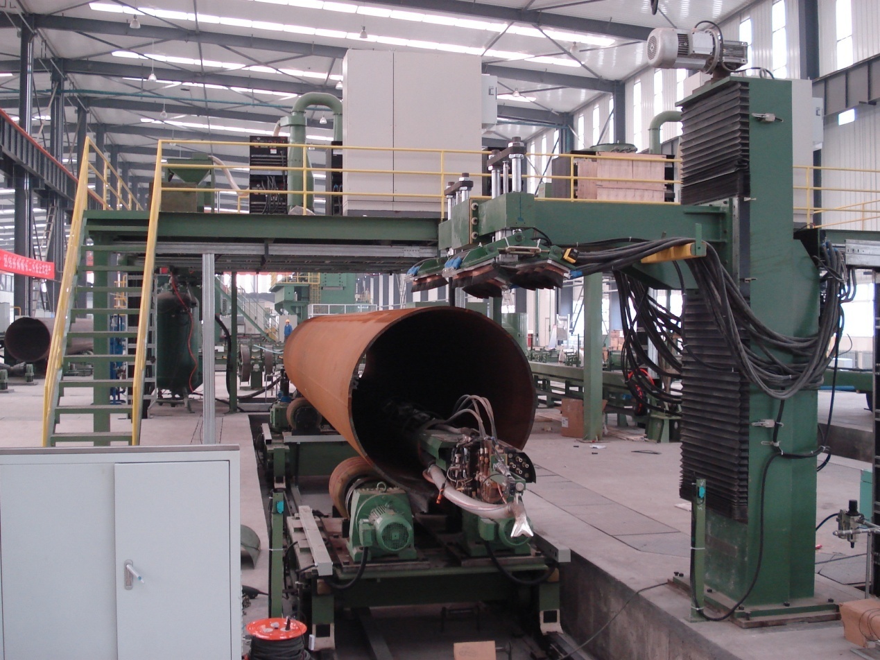 ● 2套(3套)四絲內(nèi)焊:預焊之后,在鋼管內(nèi)部進行4絲埋弧焊接。