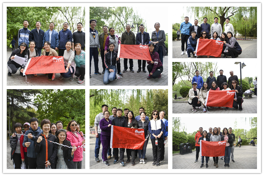 動員結(jié)束后,教練帶領(lǐng)現(xiàn)場全員做健走熱身專門訓(xùn)練,使身體各組織器官進(jìn)入運(yùn)動狀態(tài),預(yù)防運(yùn)動損傷,保證運(yùn)動效果。隨后,7支隊(duì)伍依次出發(fā)到紫竹院進(jìn)行了實(shí)地健走。健步道上,鮮花嬌艷,草木翠綠,一張張容光煥發(fā)的笑臉在春天的氣息里充滿活力。大家擺動雙臂、昂首挺胸、大步前行,用科學(xué)健走的步伐,感受健走的樂趣,既走出了精神,走出了健康,也走出對新時(shí)代國富民強(qiáng)的向往、對健康快樂的追求、對幸福生活的期待;并通過“拼搏向上”、“傳遞偉大的變革”、“攜手走過70年”、“我是奉獻(xiàn)的螺絲釘”和“我們一條心”團(tuán)建項(xiàng)目進(jìn)一步增強(qiáng)了團(tuán)隊(duì)凝聚力、執(zhí)行力和戰(zhàn)斗力。